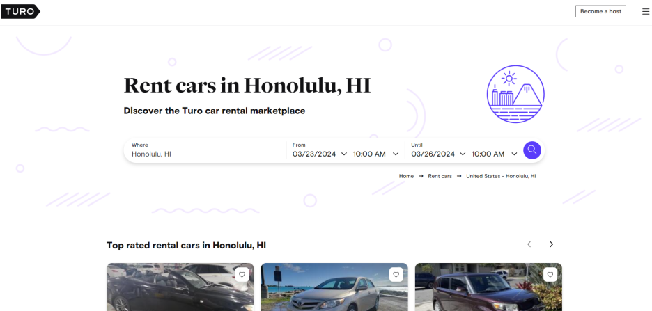 AVIS, Hertz를 선택하지 않은 것은 공항에서 직접 픽업을 해야했다. 정확히는 처음에 오아후에 내릴 때 렌트카를 쓸 생각이 없었다. 그런데 호텔에 와보니 렌트카가 필요하다고 판단했다. 다시 공항으로 갈 바에야 그냥 투로(Turo)를 이용해보자는 판단이 들었다.