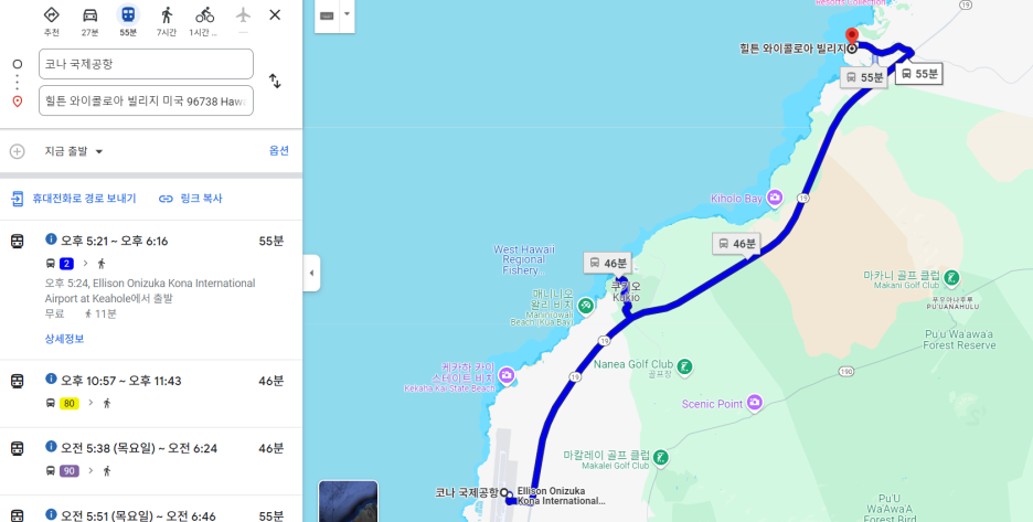 이런 곳에서 대중교통은 과연 있을까 생각했지만 실제 대중교통은 있다. 빅아일랜드에서 일단 좀 좋은 곳에서 숙박을 하고 싶었다. 그래서 "힐튼 와이콜로아 빌리지 리조트"에 머무르게 되었다.
