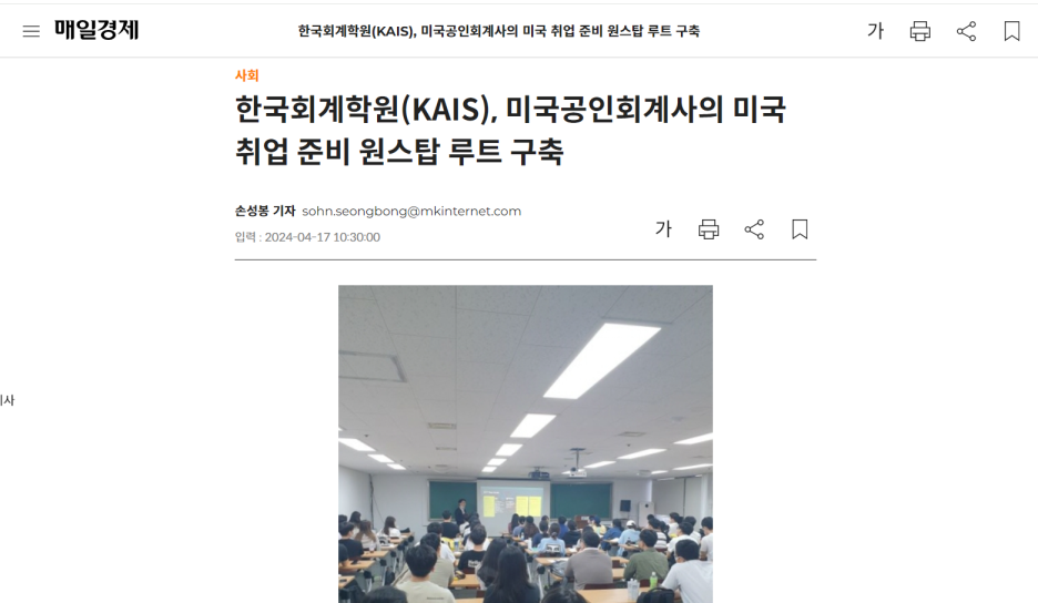 "한국회계학원(KAIS), 미국공인회계사의 미국 취업 준비 원스탑 루트 구축"