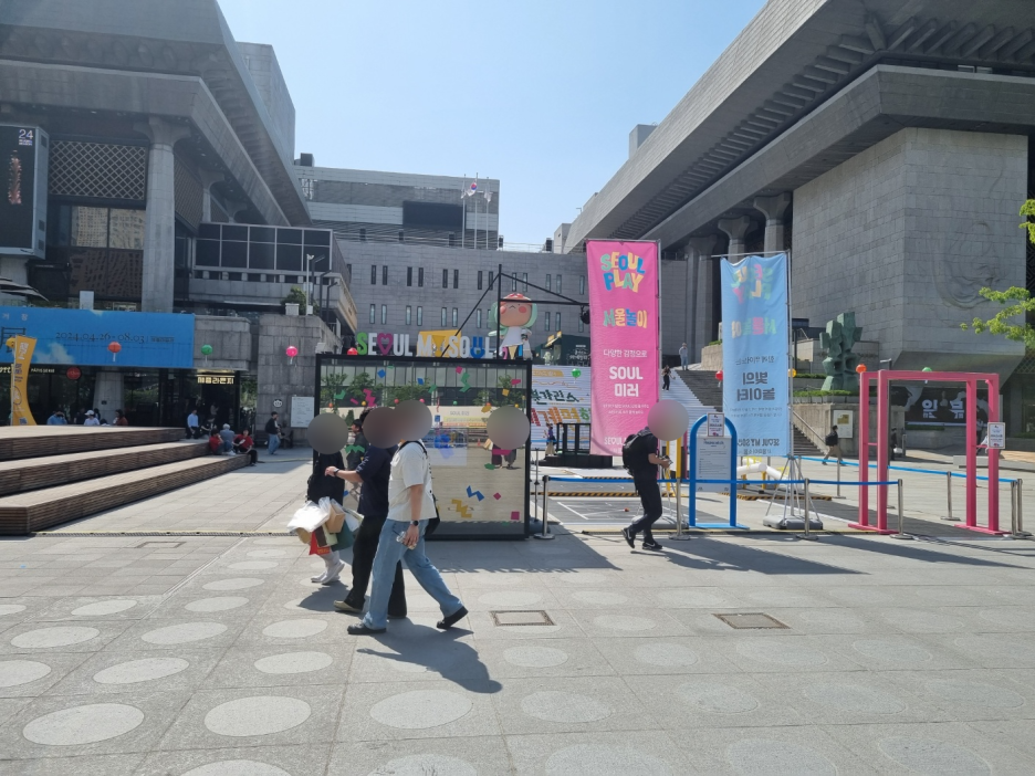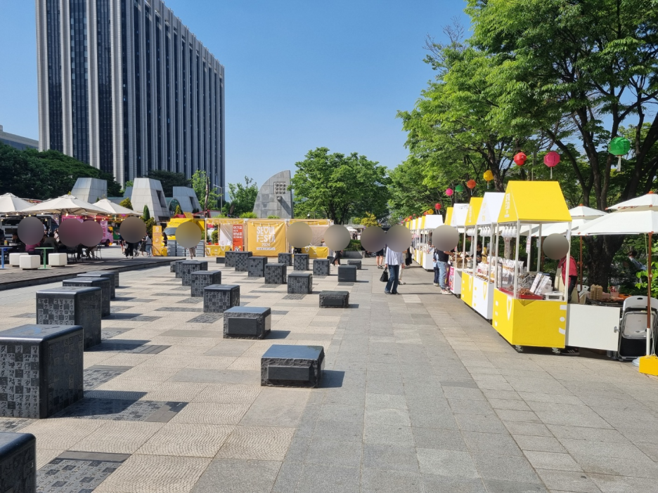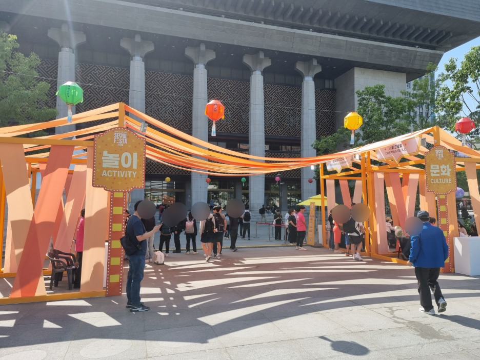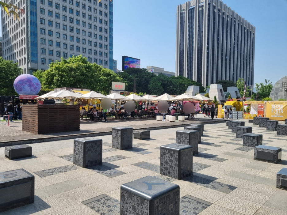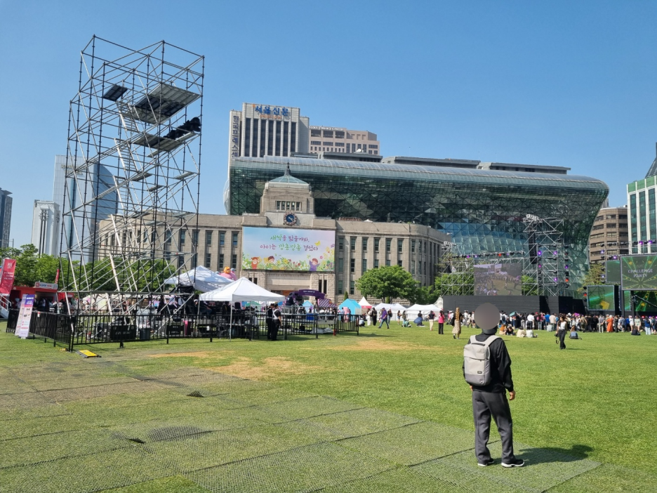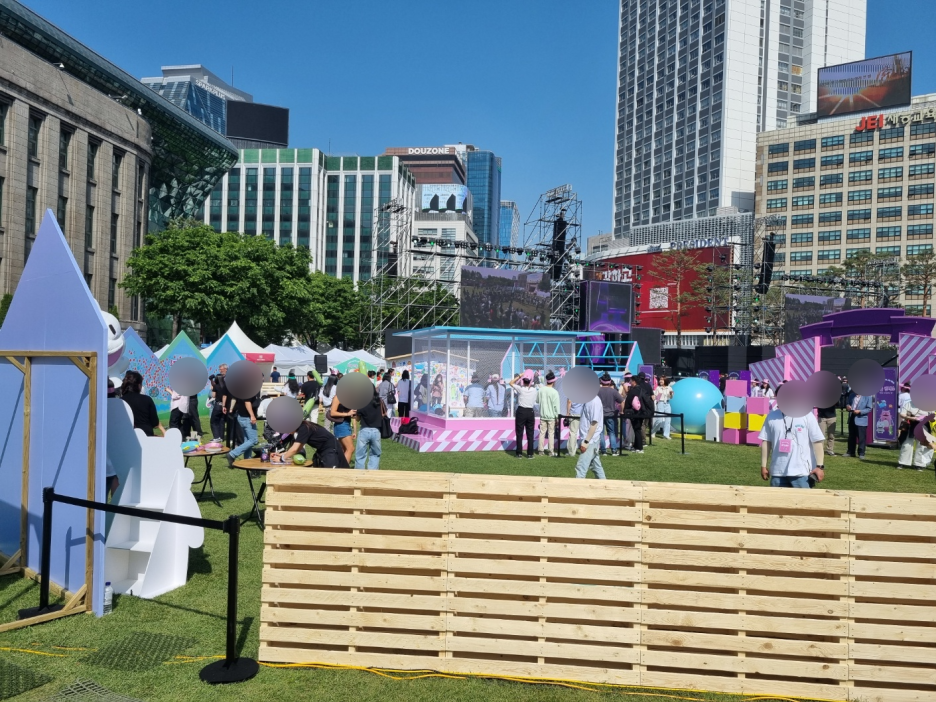쭉 길을 걸어서 시청역으로 향했다. 서울시청 잔디광장에 여려 행사가 있었다. 케이팝 관련 부스들이 있었고 놀이를 즐길 수 있는 공간도 있었다.