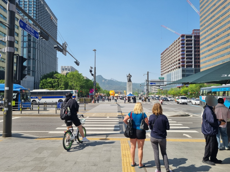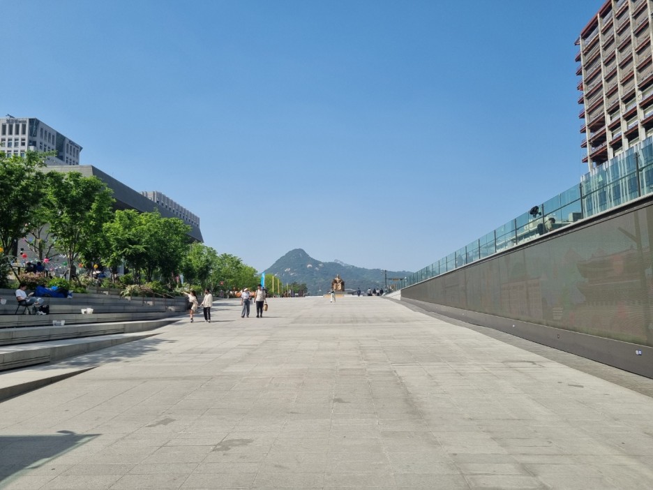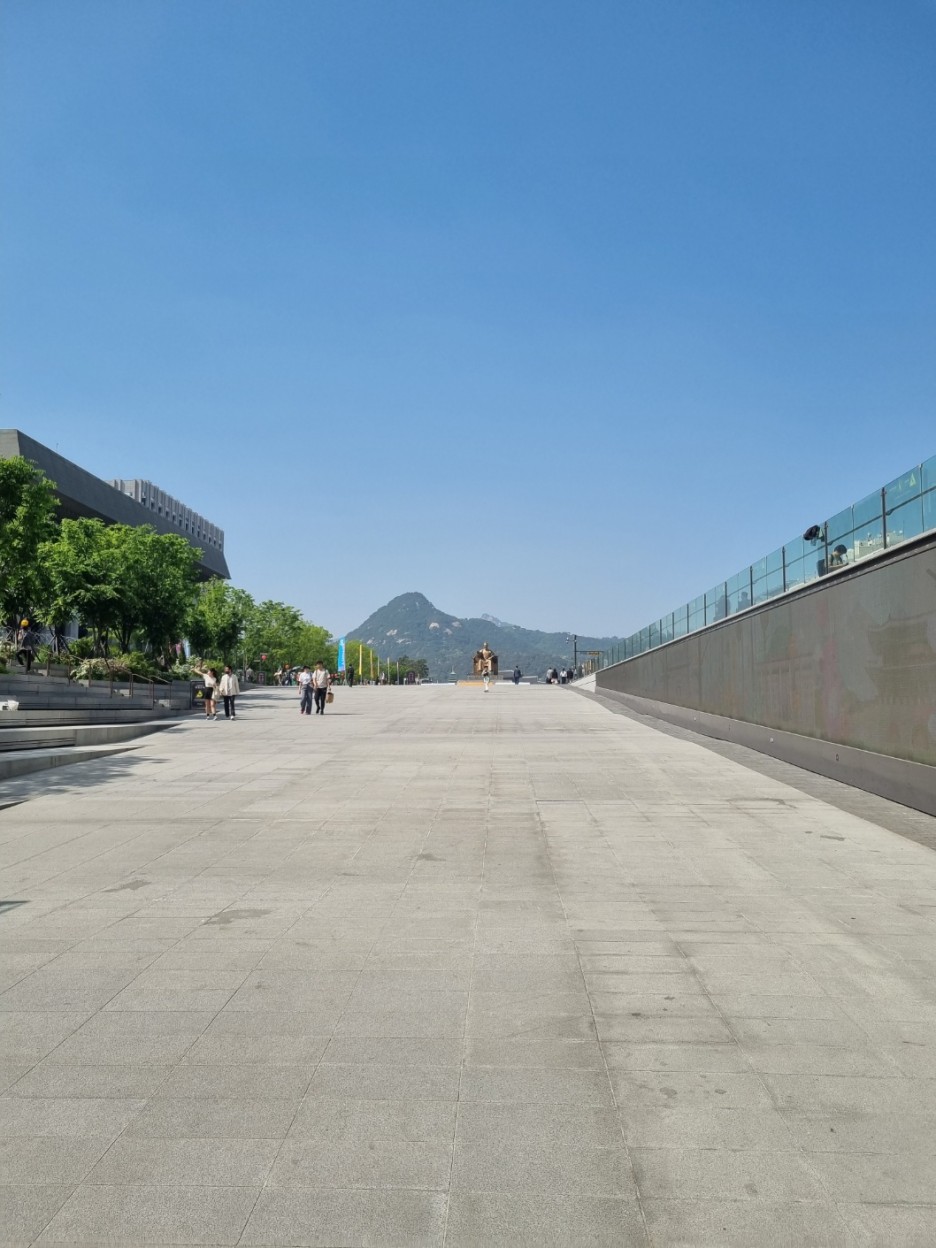 광화문역으로 내려서 올라갔다. 금요일 오후 2시 정도였는데 사람이 없었다. 그냥 평소 광화문역 느낌이었다. 주말이 아니라서 그런지 사람도 많지 않고 시위대 소리도 들리지 않고 괜찮았다. 미세먼지도 없는 느낌이라서 파란 하늘을 볼 수 있었다.