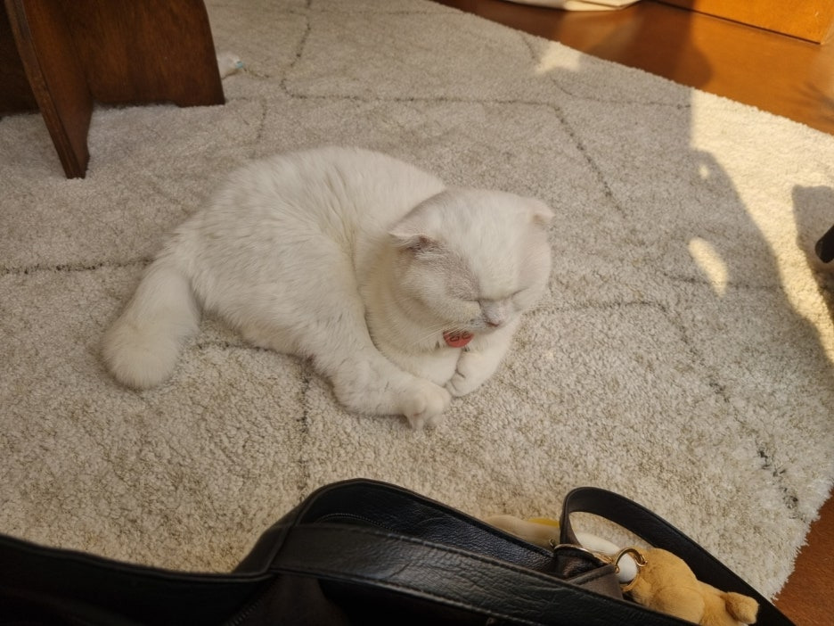 몽땅이라는 친구는 거의 한자리에 앉아서 움직이지 않았다. 이 친구는 6살이라고 하는데 사람 나이로 치면 거의 중년을 넘어서는 수준이었다. 나이가 이 정도 되면 특별한 자극이 없는 한 별로 큰 일이 없는 것 처럼 행동할 것 같다. 그래도 옆에 쭉 있으면서 많이 쓰다듬을 수 있었다.