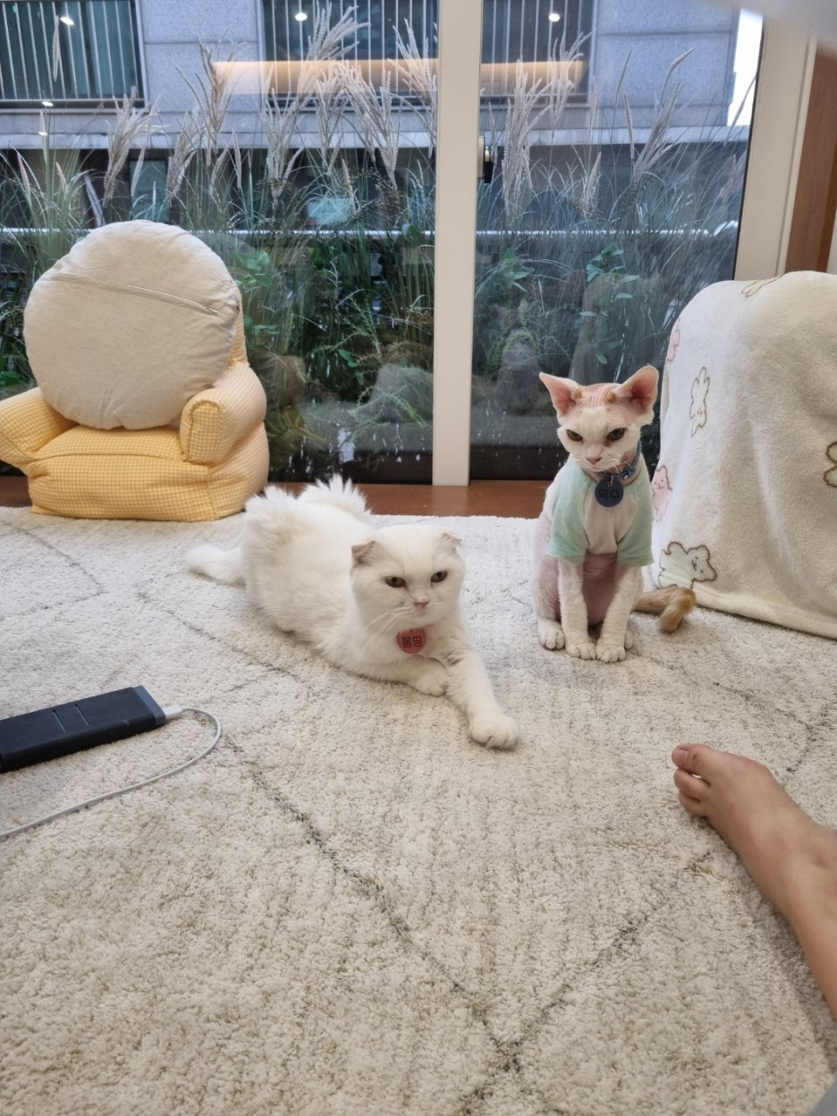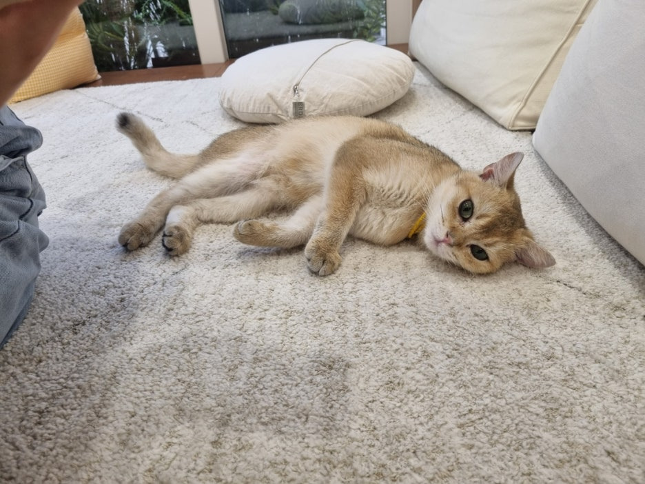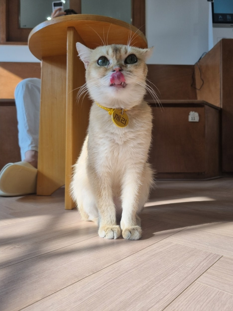 반겨주는 친구는 "제리"였다. 사장님께 여쭈어보니 6개월 정도 되었다고 했다. 상당히 젊은 친구였다. 이 친구는 "개냥이"라고 설명하는 것이 맞을 것 같다. 사람들의 손을 거절하지 않고 즐거워했다. 심지어 배를 까보여주는 애교도 부렸다.