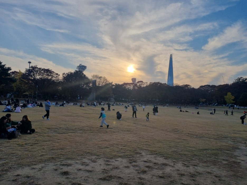 걷다보니 공원이 있었다. 이렇게 공원에서 돌아보니 롯데타워가 보였다.