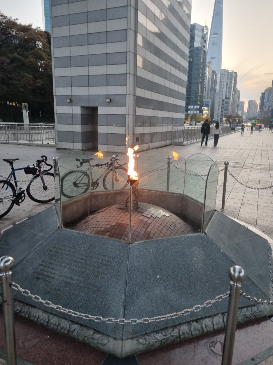 뭔가 꺼지지 않는 불을 볼 수 있었다. 성화같았는데 이것을 보니 러시아 출장이 떠올랐다. 내가 러시아 출장에 가면 소련 조형물과 전시물을 볼 수 있는데 대표적인 것이 "불"이다. 전승기념이라고 해서 "불"이 꺼진 적이 없다는 것으로 홍보를 많이 했었는데 이 것을 보니 소련이 떠올랐다.