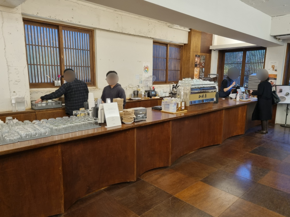 주문하는 곳은 넓었다. 분위기는 옛스럽다고 표현하는 것이 좋아 보였다. 테이블이 있긴 한데 최대한 테이블끼리 공간을 넓게 두면서 배치한 것 같았다.