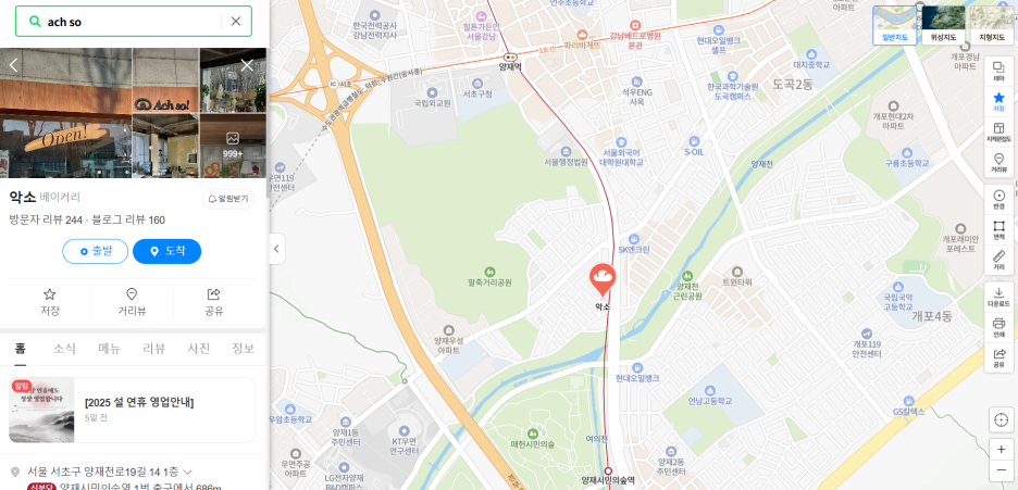 위치는 아래와 같다. "양재역"과 "양재시민의숲" 사이었다. 살짝 애매한 거리긴 하지만 버스를 타고 가거나 걸어 가면 된다.