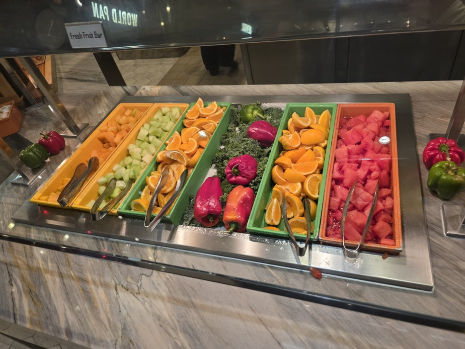 퓨전양식이 아니라 그냥 전통적인 미국 부페 스타일이었다. 금액은 $30달러 내외였던 것으로 기억한다. 가격대비 선택할 수 있는 메뉴도 많았고 이 곳은 "게"를 무제한으로 제공했기 때문에 사람들이 대부분 "게"에 집중하였다.