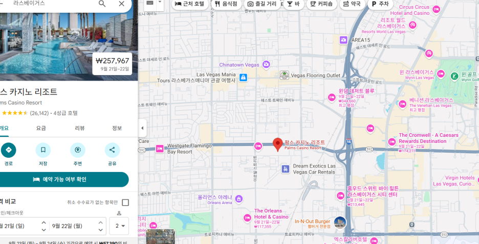 라스베가스로 들어와서 "시저 호텔"에 짐을 풀고 식사를 다녀왔다. 식사는 "팜스 카지노 리조트"에서 해결했다. 이 날은 Labor day로 알고 있었는데 거의 모든 호텔이 부페를 다 닫았다. 그 근처에서 유일하게 부페가 열렸던 곳이 이곳이라서 저녁식사를 해결할 수 있었다.