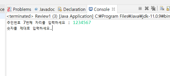 System.out.print("주민번호 7번째 자리를 입력하세요 : ");