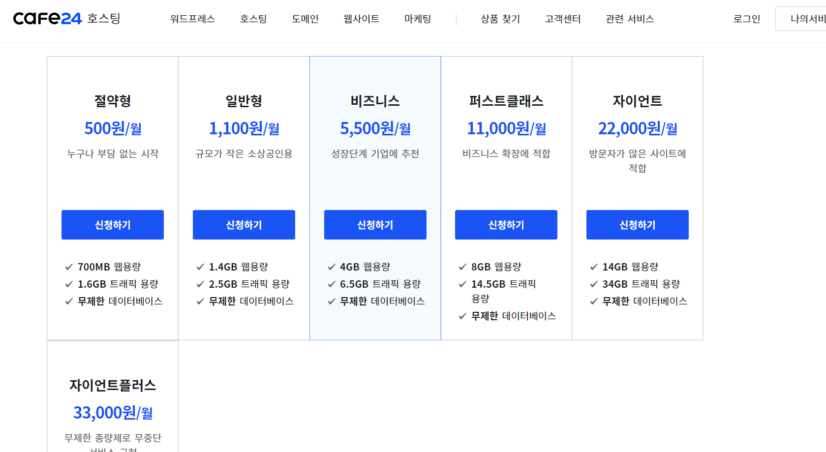 일단 $28근처 가격을 잡아보면 자이언트, 자이언트플러스랑 비교할 수 있는데 클라우드웨이즈에서 제공하는 웹용량, 트레픽 용량보다 훨씬 큰 것을 알 수 있다. 클라우드웨이즈 $28프로그램과 카페24의 5,500원 프로그램이 비교 가능하지 않을까 싶었다.