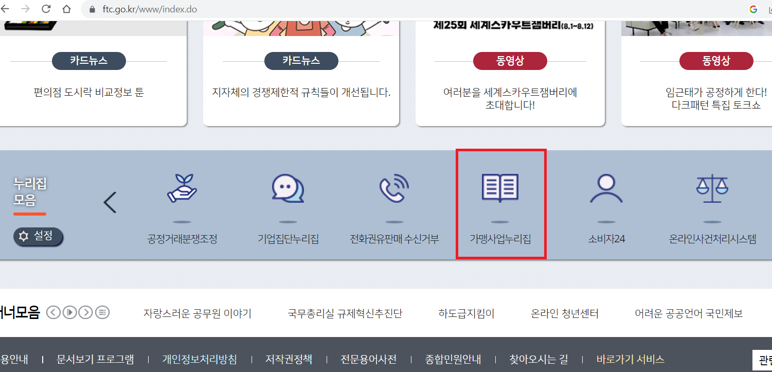 맨 아래로 스크롤을 내리면 "가맹사업누리집"이라는 것을 볼 수 있다.