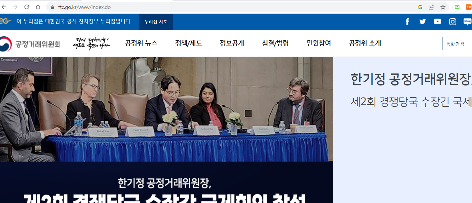 구글이나 네이버, 다음에 "공정거래위원회"를 치면 아래와 같은 웹사이트에 들어갈 수 있다.