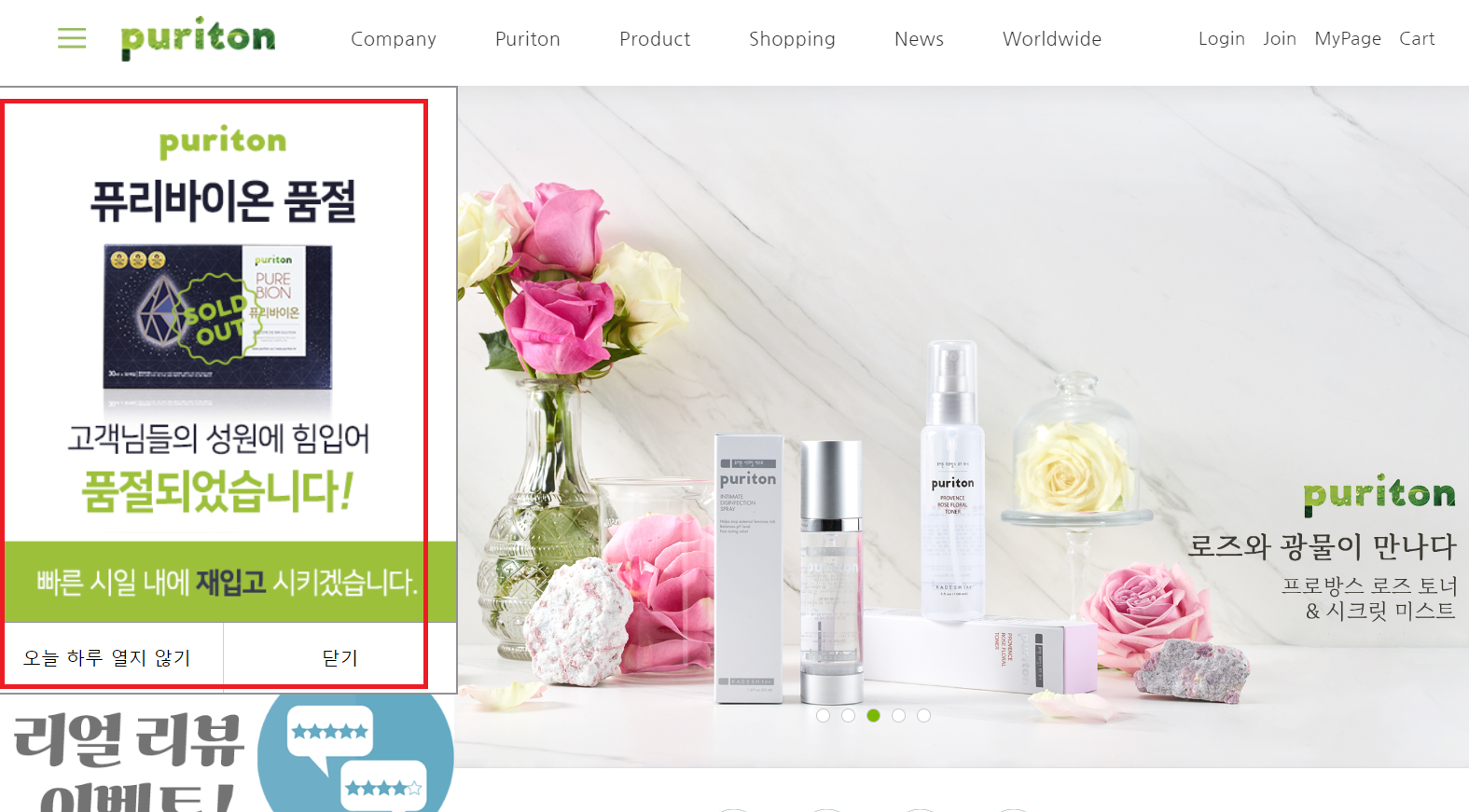 한약을 다 먹고 이제 퓨리바이온으로 평소 몸을 챙기려고 결심을 하고 웹사이트에 들어갔는데 아래와 같은 화면이 떳다.