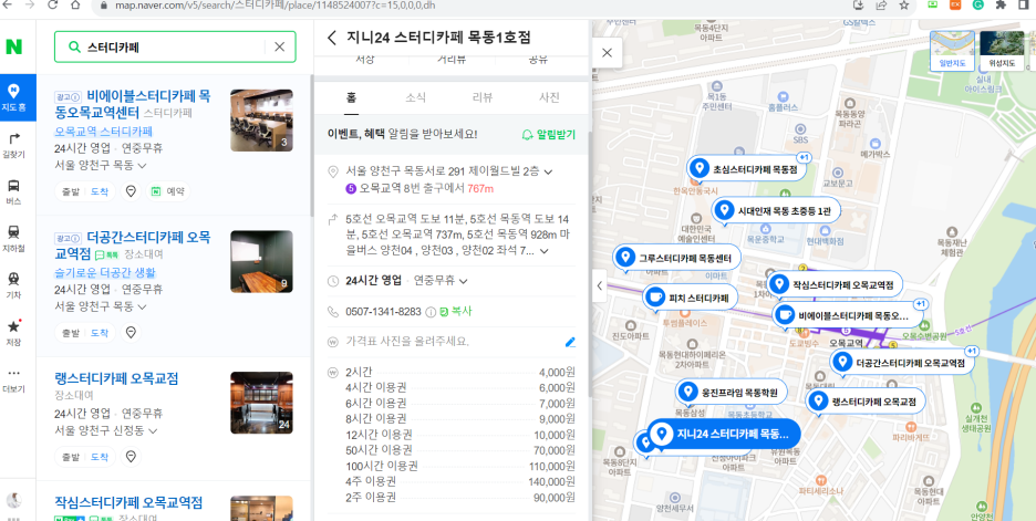 오목교역 주변에 여러 스터디카페가 있고 금액도 사실 거의 비슷한 상황입니다. 2시간에 4천원입니다. 좀 더 싸게 운영하는 곳은 2시간에 3천원으로 운영되기도 합니다. 일단 상황은 이렇게 확인이 가능했습니다.
