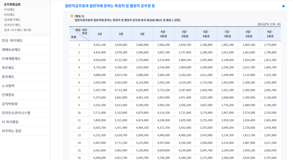 그래서 돈을 얼마나 버는지 궁금했다. 공무원 봉급표는 누구나 확인 가능하니 살펴 보기 좋았다.