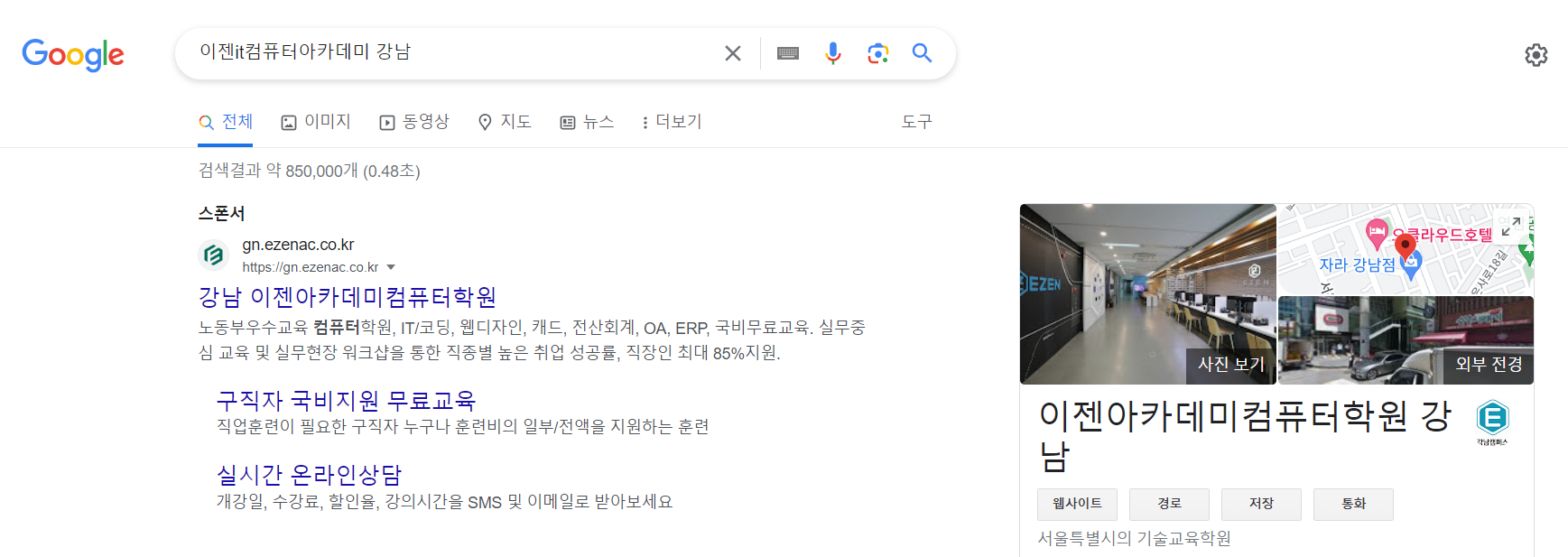 수업은 선생님 지도에 따라 어떻게든 따라가면 그만이었다 시키는데로 하면 반이라도 갈 수 있었고 선생님께 질문하면 잘 안내해주셨다. 내가 선택했던 곳은 강남역에 있는 "이젠it컴퓨터아카데미"였다. 선생님도 좋았고 학원 직원들도 친절했다. 안내데스크에 계셨던 두 선생님과 친해졌었는데 그분들은 진심으로 내 미래를 걱정해 주셨다. 나는 내 미래를 그리 걱정하지 않았는데 그 분은 정말 걱정해줘서 지금도 고마운 마음이 있다.