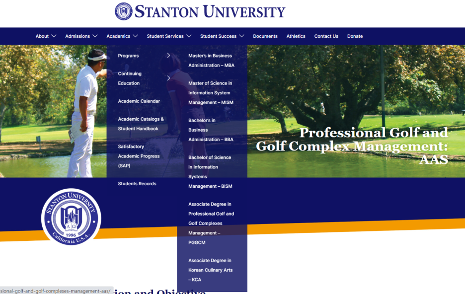 한편, 골프만 하다보면 공부를 놓칠 수 있고 대학 진학이 어려울 수 있다고 합리적으로 생각해 볼 수 있다. Stanton University를 유심히 보다보면 Golf Management에 대해 학위를 주고 있는 것을 확인할 수 있었다.