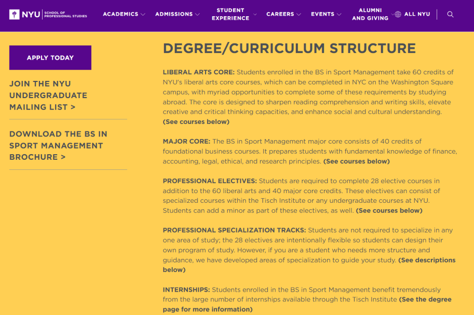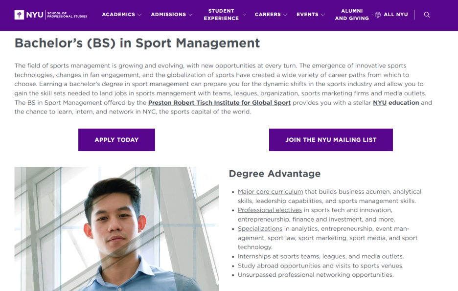 합리적 학비가 장점인 곳은 저번 포스팅에서 Stanton university (스탠톤 대학교)의 골프경영학과를 소개했었다. 이번 학교는 가장 럭셔리한 곳인 뉴욕대(NYU) 스포츠경영학과를 찾아보았다.