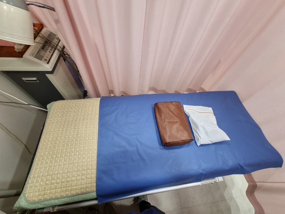 치료실에 들어가서 바지를 갈아 입고 침을 맞기 위해 누웠다. 원장 선생님께서 허리를 만저보시더니 몇번 디스크에 문제가 있는지 바로 파악을 하셨다. 요통이 발생한 경위를 설명드렸고 원장선생님은 약침을 놓아주셨다. 한 4방 정도 놓아주신 것 같았고 약침이 들어갈 때 뭔가 시원한 것이 허리에 들어오는 느낌이었다.
