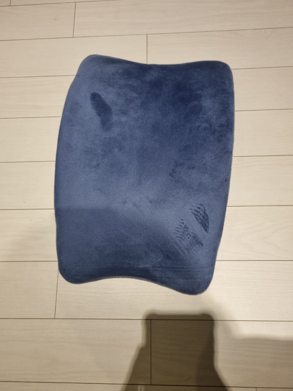 처음 이 제품을 나무 마루 바닥에 놓고 썼었다. 그런데 며칠 지나서 보니 바닥이 긁혀있거나 홈이 파져있는 것을 볼 수 있었다. 내 허리 무게가 나무 마루에 전달되는데 특정 부분에 힘이 실려서 바닥이 긁혔던 것이다. 그냥 이 제품을 썼다간 바닥이 계속 긁힐 것 같아서 제품 밑에 수건을 깔고 쓰게 되었다. 수건을 깔고 쓰니 바닥 긁힘 현상은 사라졌다.