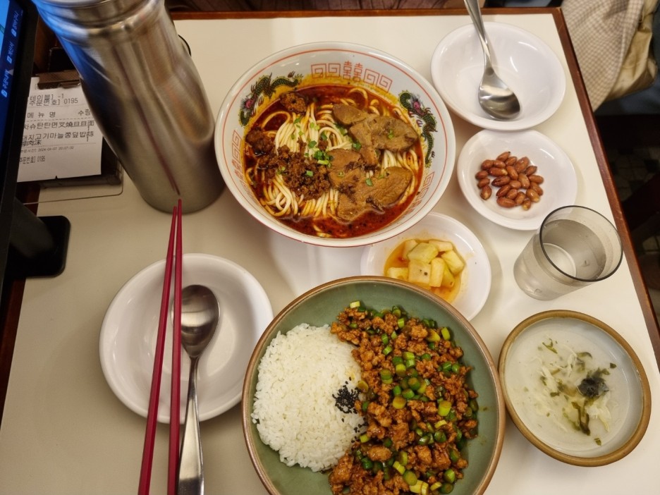중국인 현지 손님이 먹는 방법을 보니 국물을 마시지 않았다. 그냥 면만 건져내어 먹거나 고기만 먹었다. 중국인들이 어떻게 먹는지 보고 따라해야하는데 그렇지 못했던 것이다.