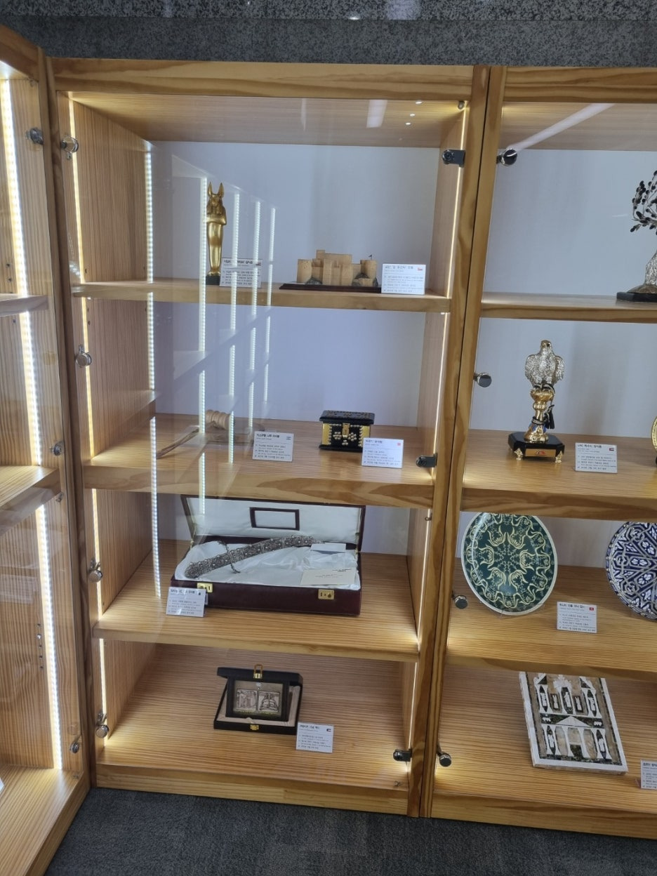국회도서관 2층으로 올라 갔는데 뭔가 신기한 것들이 전시되고 있었다. 국회의장 선물 전시 공간이라는 것인데 다른 나라 국회의장으로부터 받은 선물을 전시하고 있는 것 같았다.