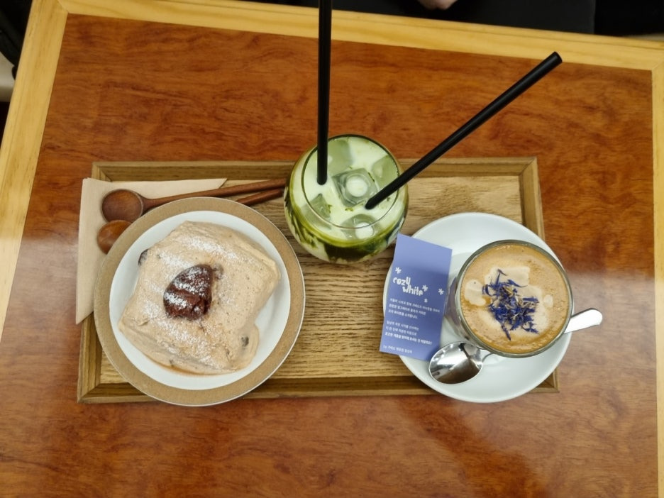 말차라테는 말차에 라테가 들어간 것 같고 커피는 라테 비슷한 것 같다. 아인슈페너는 블랙커피가 베이스인데 이 것은 라테가 베이스인 것 같았다. 그럭저럭 잘 마셨다.