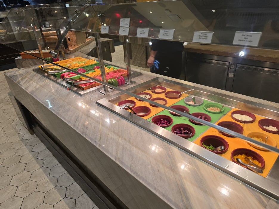 퓨전양식이 아니라 그냥 전통적인 미국 부페 스타일이었다. 금액은 $30달러 내외였던 것으로 기억한다. 가격대비 선택할 수 있는 메뉴도 많았고 이 곳은 "게"를 무제한으로 제공했기 때문에 사람들이 대부분 "게"에 집중하였다.