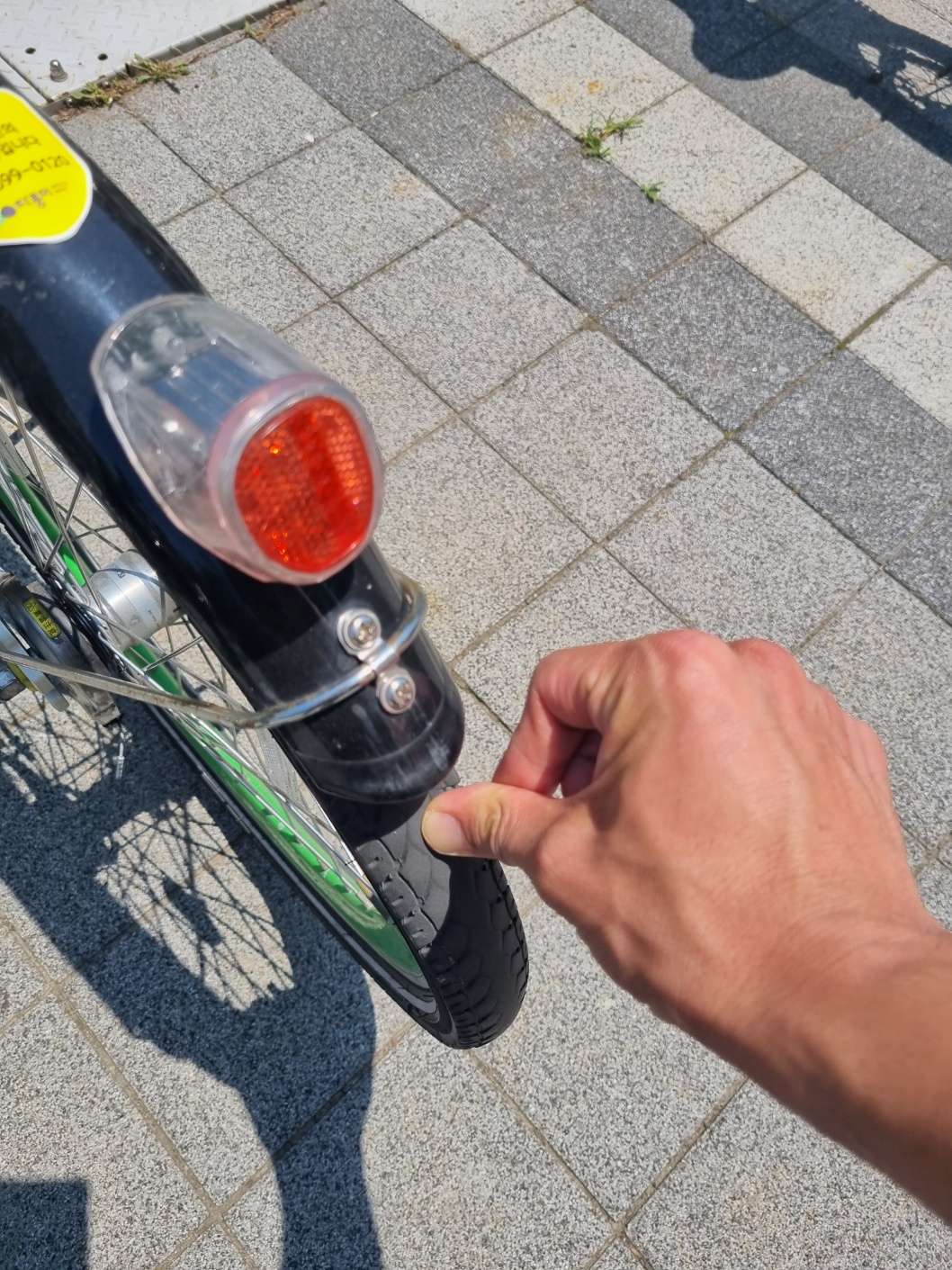 엄지 손가락으로 뒷바퀴를 눌러 보았을 때 뒷 바퀴가 잘 들어가지 않는다면 그 자전거는 좋은 자전거다. 하지만 바람이 없어서 엄지 손가락이 쑥 들어간다면 그 자전거는 좋지 않은 자전거다.