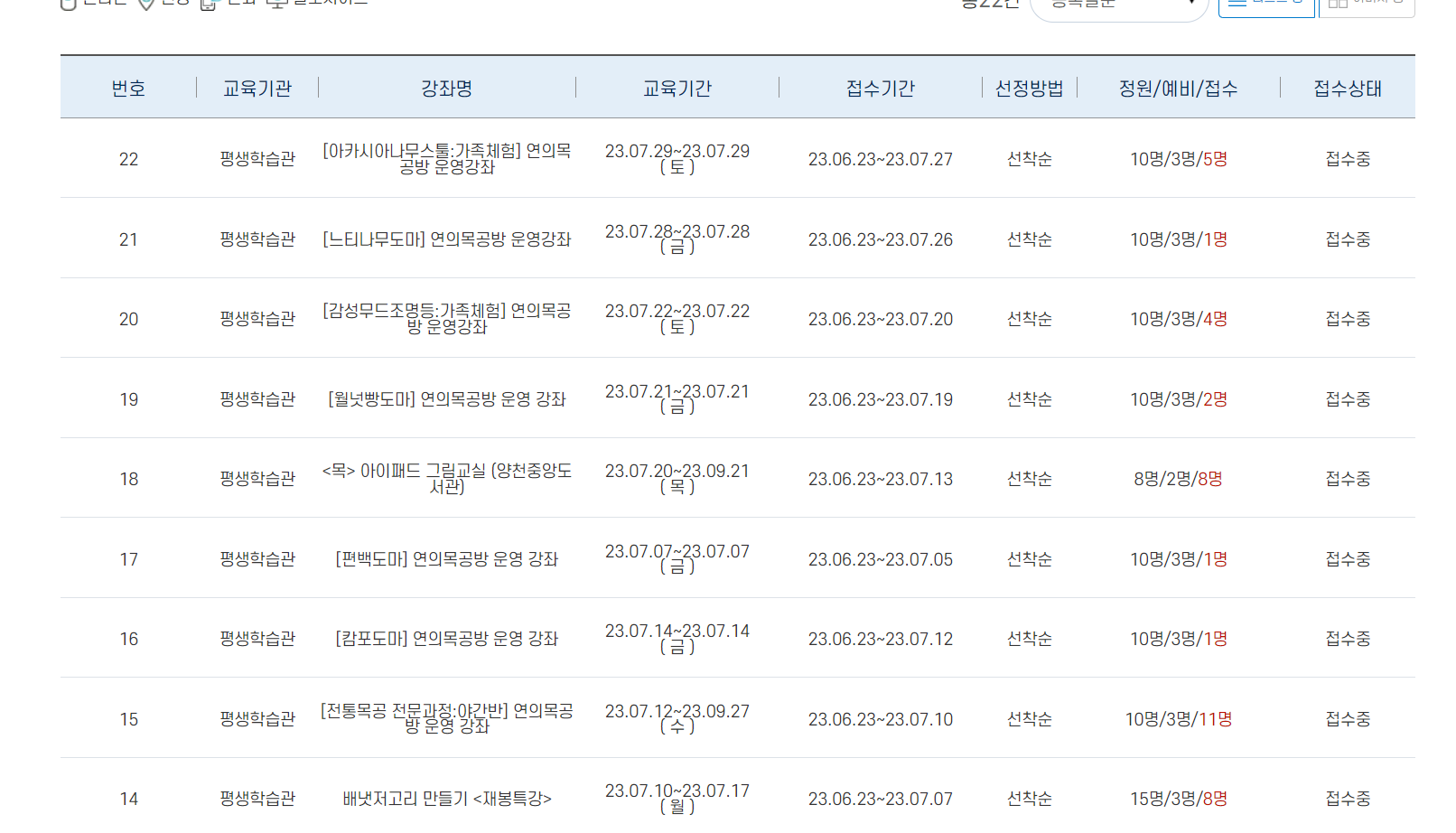 일단 이 업무를 하는 곳 자체가 "양천구 평생학습관"에서 진행을 하고 있기 때문에 웹사이트를 둘러보고 확인하는 것이 좋을 것 같다.