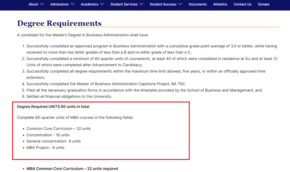 MBA 프로그램에 관심이 있었는데 졸업까지 60학점을 이수하면 되도록 되어 있다.