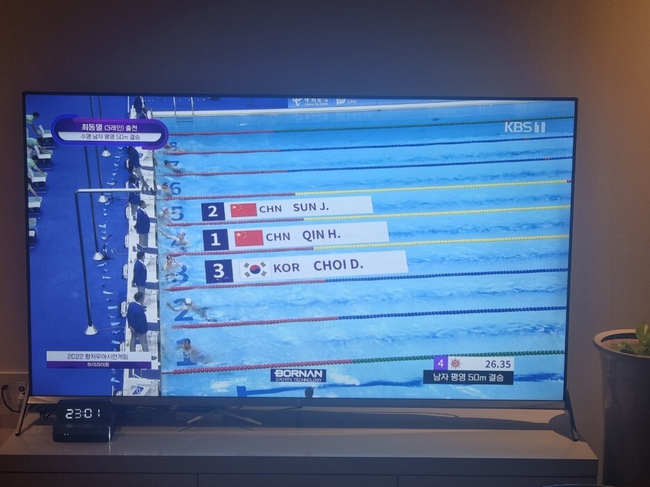 1년6개월째 쓰고 있는데 화질만큼은 정말 좋다. 굉장히 선명한 화질을 자랑한다. 그래서 화면을 보면 생생한 스포츠 장면을 느낄 수 있다. 핸드폰으로 찍은 화면은 영롱한 화면이 반영되지 않지만 실제 화면을 보게되면 화질이 좋다는 것을 느낄 수 있다.