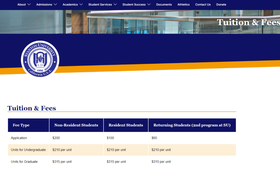 3. Stanton University(스탠톤 대학교)의 Tuition(학비)