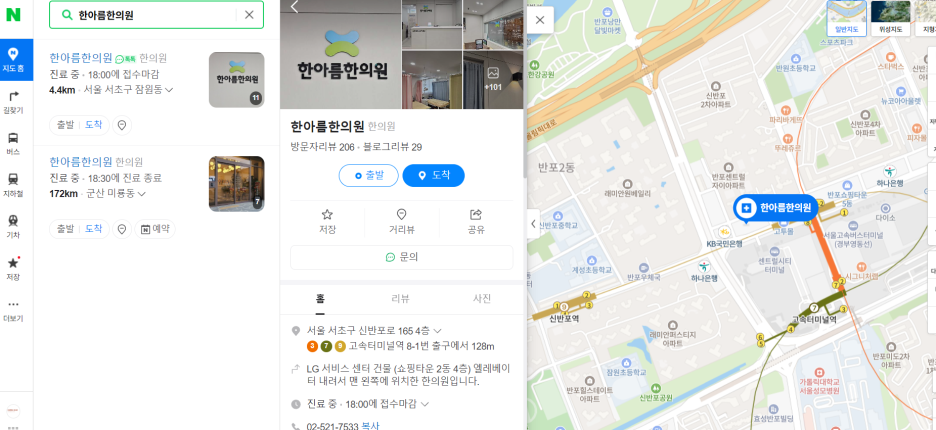 고속버스터미널역 8-1출구로 나와서 걸으면 LG베스트샵이 있었고 그 상가 건물에 위치한 "한아름한의원"을 찾아갔다. 원장 선생님께서 침을 잘 놓으시고 "퓨리톤 약침"으로 치료를 한다는 소식을 들었다.